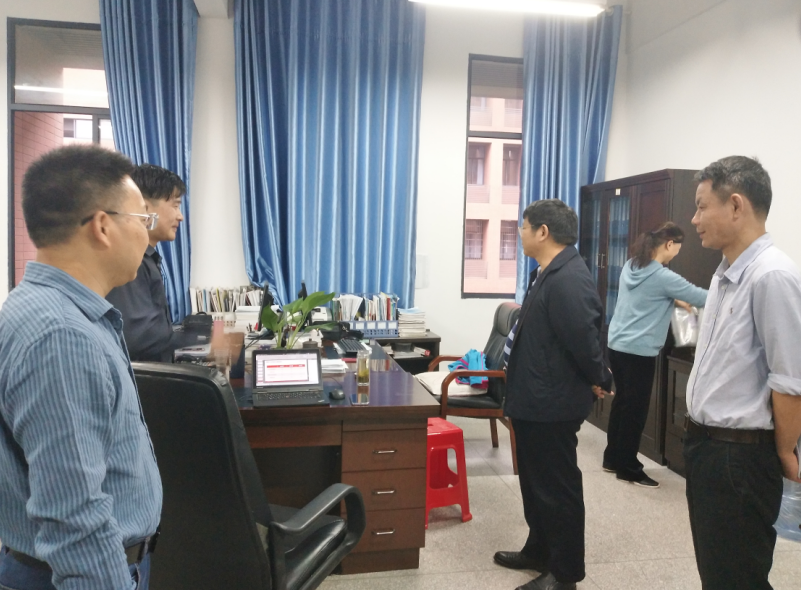 罗书记仔细询问陪同巡查的机电院领导班子,了解开学准备工作情况,对机电院的开学准备工作提出了具体要求,细询问了我院防疫物质储备、线上教学、学生返校和学生毕业工作等情况,指出在学在即,学校学生密集、来源广泛,要认真执行好开学工作方案和学生管理工作,确保学生安全、顺利返校,正常实施教学活动。随后,罗书记走访了各个教研室、行政办和学工办,与正在值班、工作的老师们进行了交谈。最后,罗书记对我院疫情防控工作、开学准备工作和学生管理工作予以了充分肯定。